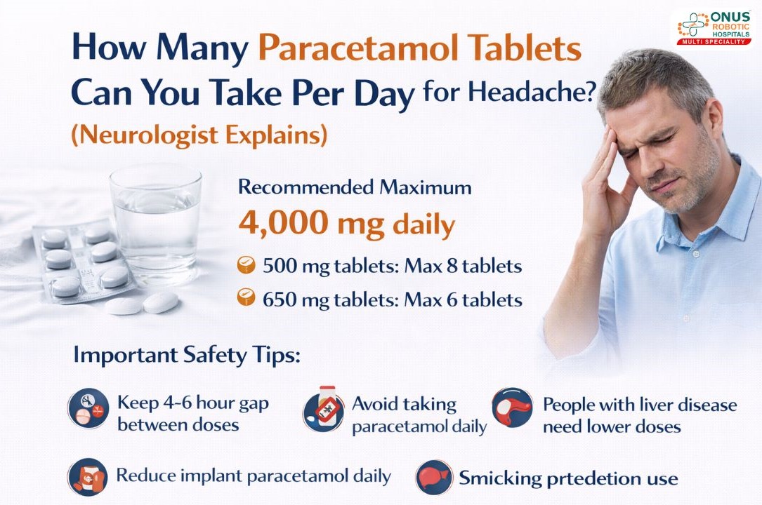 How Many Paracetamol Tablets Can You Take Per Day for Headache? – By Dr.Krishna Chaithanya Reddy, Neurologist, ONUS Robotic Hospitals